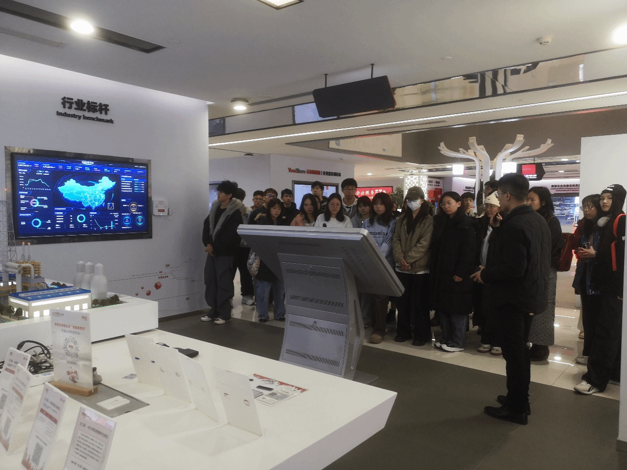 参观过程中,讲解员带领同学们梳理了用友生态的发展脉络:从早期聚焦企业基础业务的信息系统,到覆盖企业资源管理的ERP阶段,再到如今打通“企业内部+产业上下游”的BIP生态帮助同学们理解企业需求升级推动数智化迭代的实践路径。