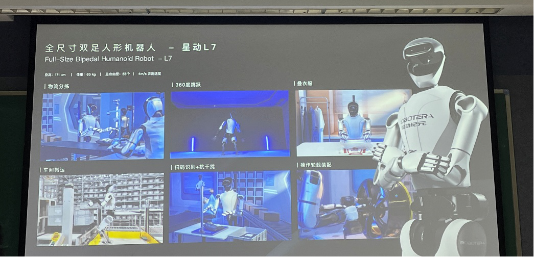 讲座中,席悦博士用生动的案例和直观的Demo,展现了星动纪元在技术上的硬核实力。公司孵化于清华大学“姚班根据地”——交叉信息研究院,是清华大学唯一占股的人形机器人公司,短短两年内迭代多代产品,其双足人形机器人不仅拥有55个自由度、400牛米峰值扭矩的强悍性能,更实现了多项世界领先突破:2023年12月成为全球首个用强化学习实现雪地无编程稳定行走的团队,2024年成功挑战长城楼梯攀爬,河西走廊3.6米/秒的奔跑速度曾创下电驱人形机器人奔跑世界纪录,更在世界机器人运动会中斩获跳高冠军。