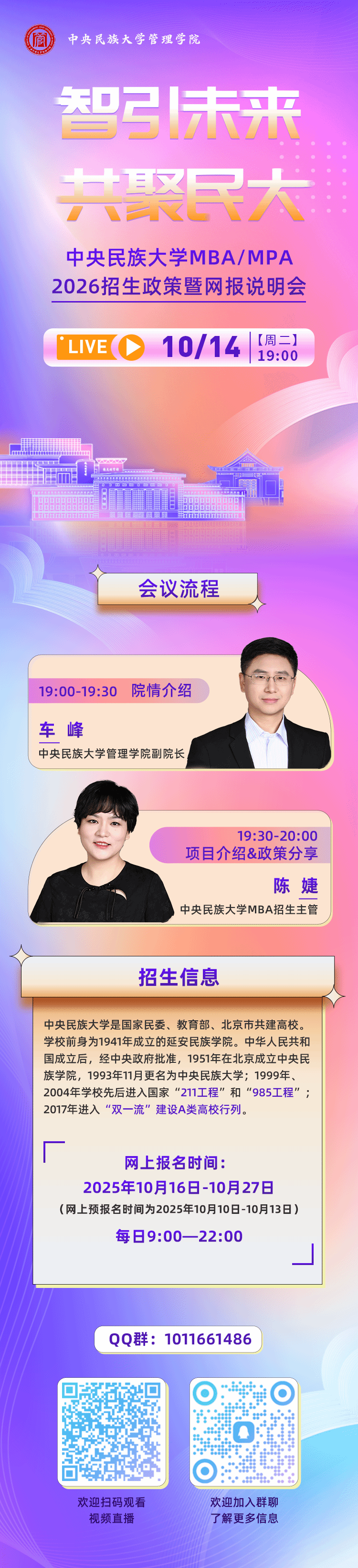 MBA/MPA2026招生政策暨网报说明会火热来袭