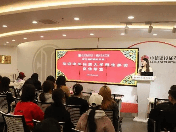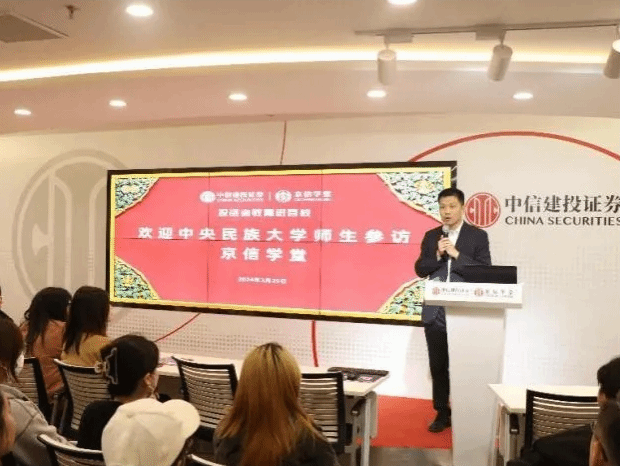 专职辅导员金鸾瑛老师带领我院49名学生赴中信建投证券投资者教育基地进行参访交流。中信建投证券投资者基地负责人陈剑、中信建投证券北京东城分公司人力资源总监薄雪、财富管理部营销总监陈凯等领导热情接待了我院师生。