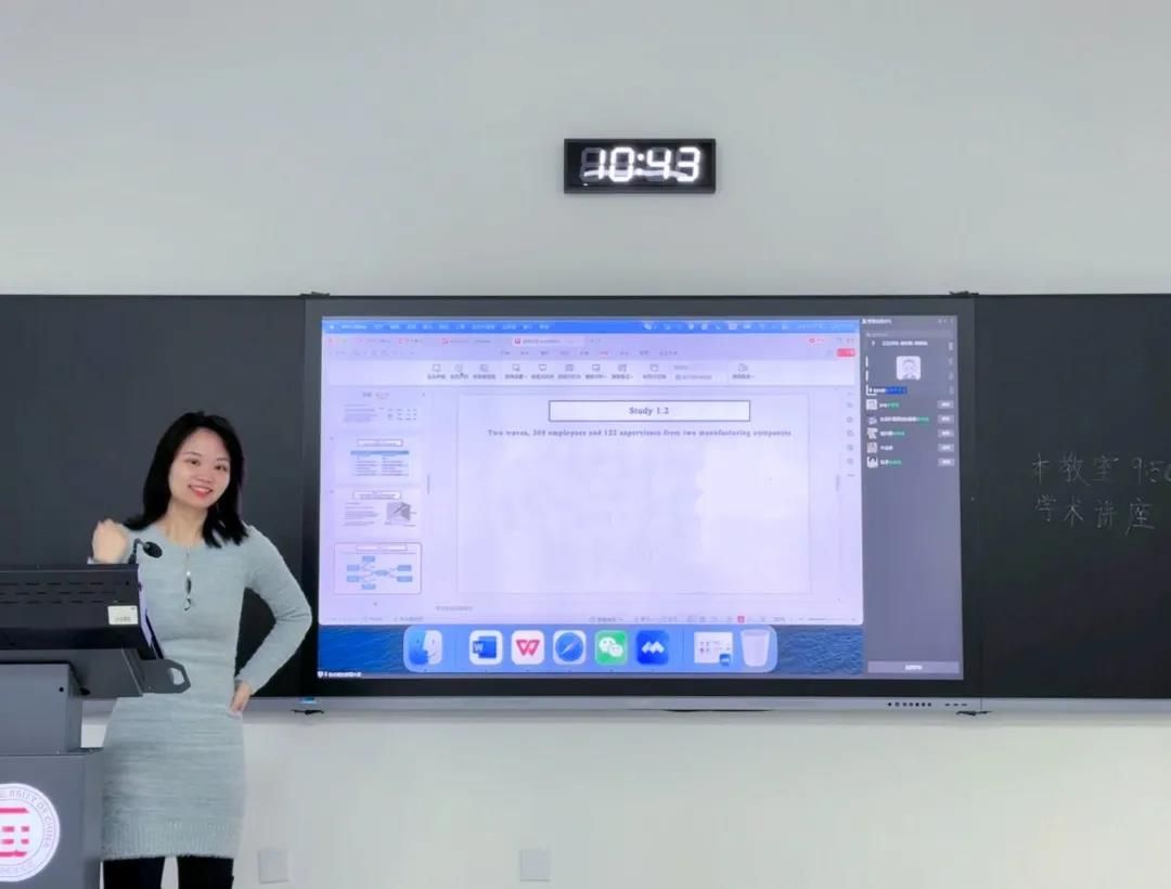 陈乐妮老师主讲的《研究分享——员工童年社会化经历与成年后对领导的反应》讲座在丰台校区明德楼114教室举办,谢作渺教授主持讲座。
