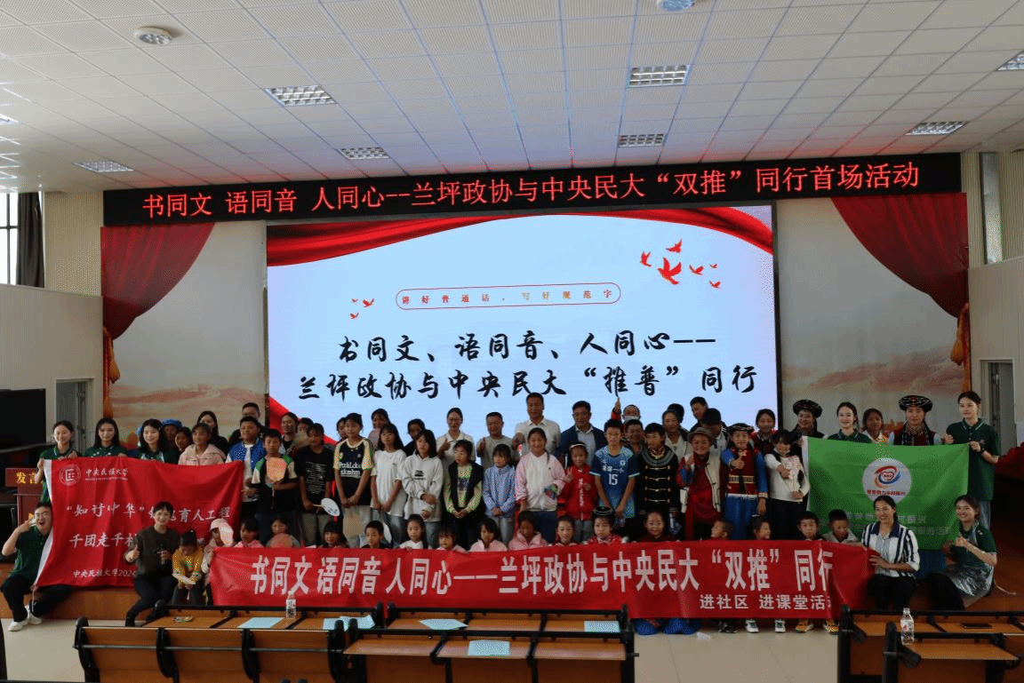 “赴新疆、内蒙古、云南、广西四省市、自治区推普助力乡村振兴服务队”聚焦于语言文字工作基础较薄弱的国家乡村振兴重点帮扶县开展普通话推广普及工作,服务队深入祖国边疆,走进校园与村民家中,通过共读、共学、共讲、共唱等形式推广普通话、深学细悟“金教材”,促进语言相通与心灵融合。