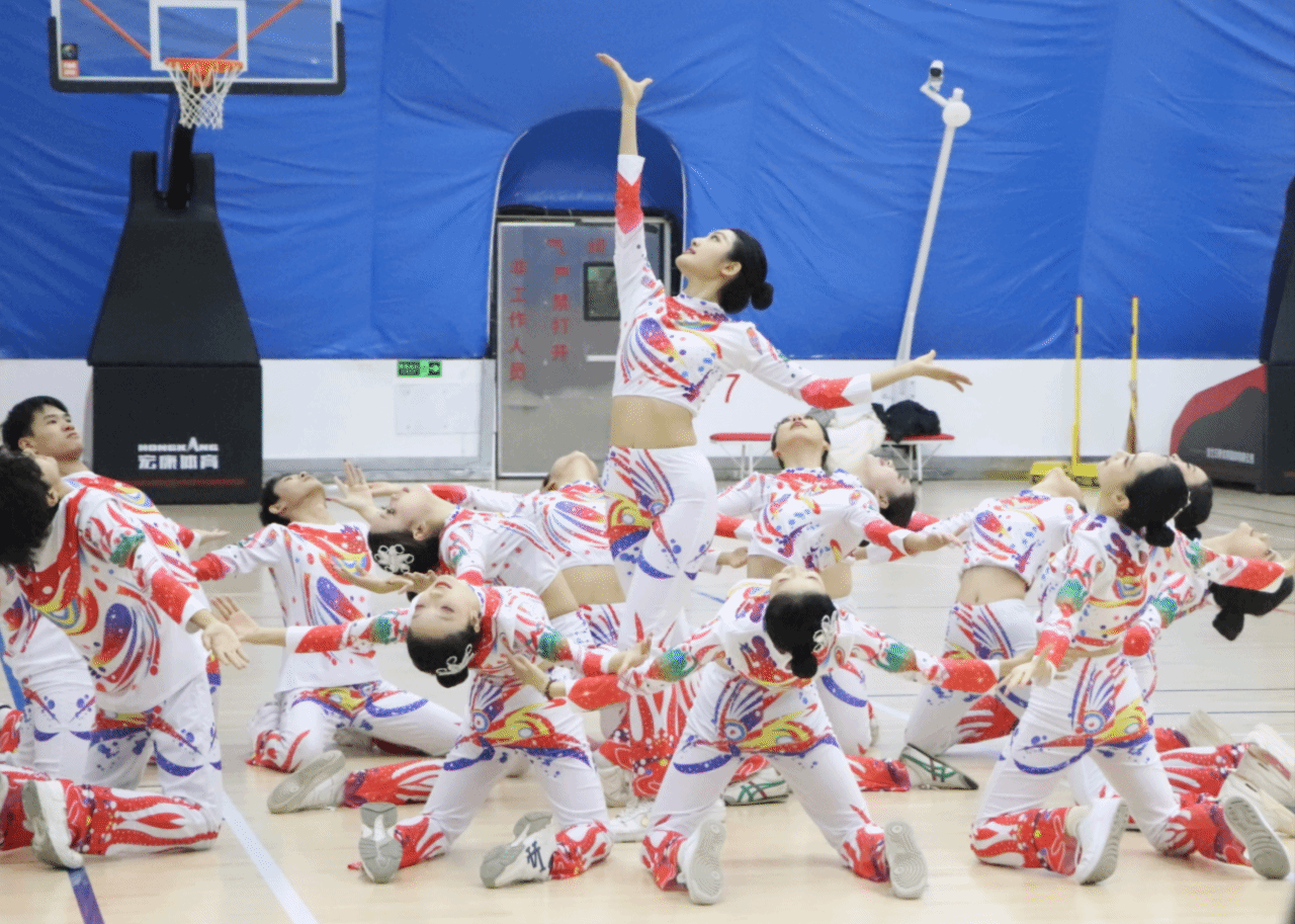 选手们身姿挺拔,眼神坚定;手臂轻舒,动作流畅;衣角飞扬,激情四溢。每一个节拍、每一个动作都经过反复推敲,力求完美呈现。恰似石榴籽般紧密簇拥,将对民族团结的拥护与未来携手同行的憧憬嵌入每一帧舞姿。